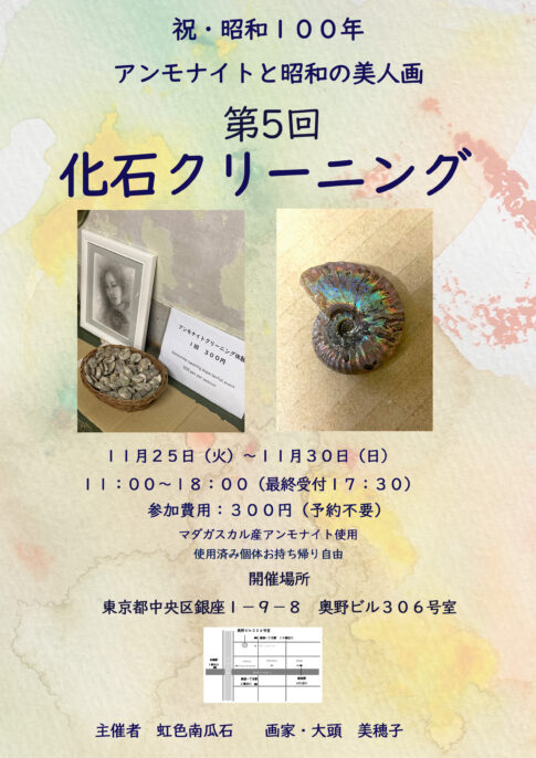 アート昨年のグループ展でアンモナイトのクリーニングイベントを行いましたが、今年は、アンモナイトと昭和の美人画をテーマにイベントを開催しております。 2025年4回目となるイベントが10月27日より始まりました。 来てくださる方...
