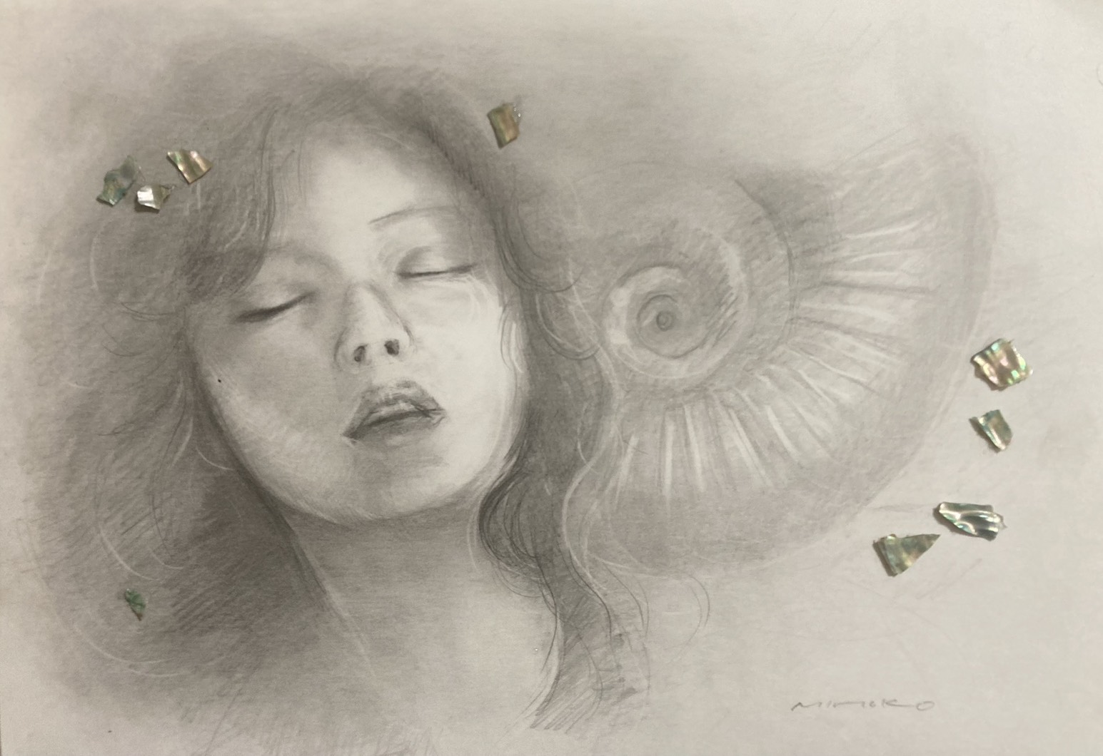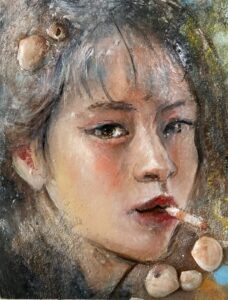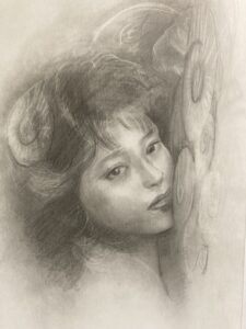 現在、その記憶の中にある理想の女性像を心に描きながら、油彩と鉛筆を用いて制作しています。