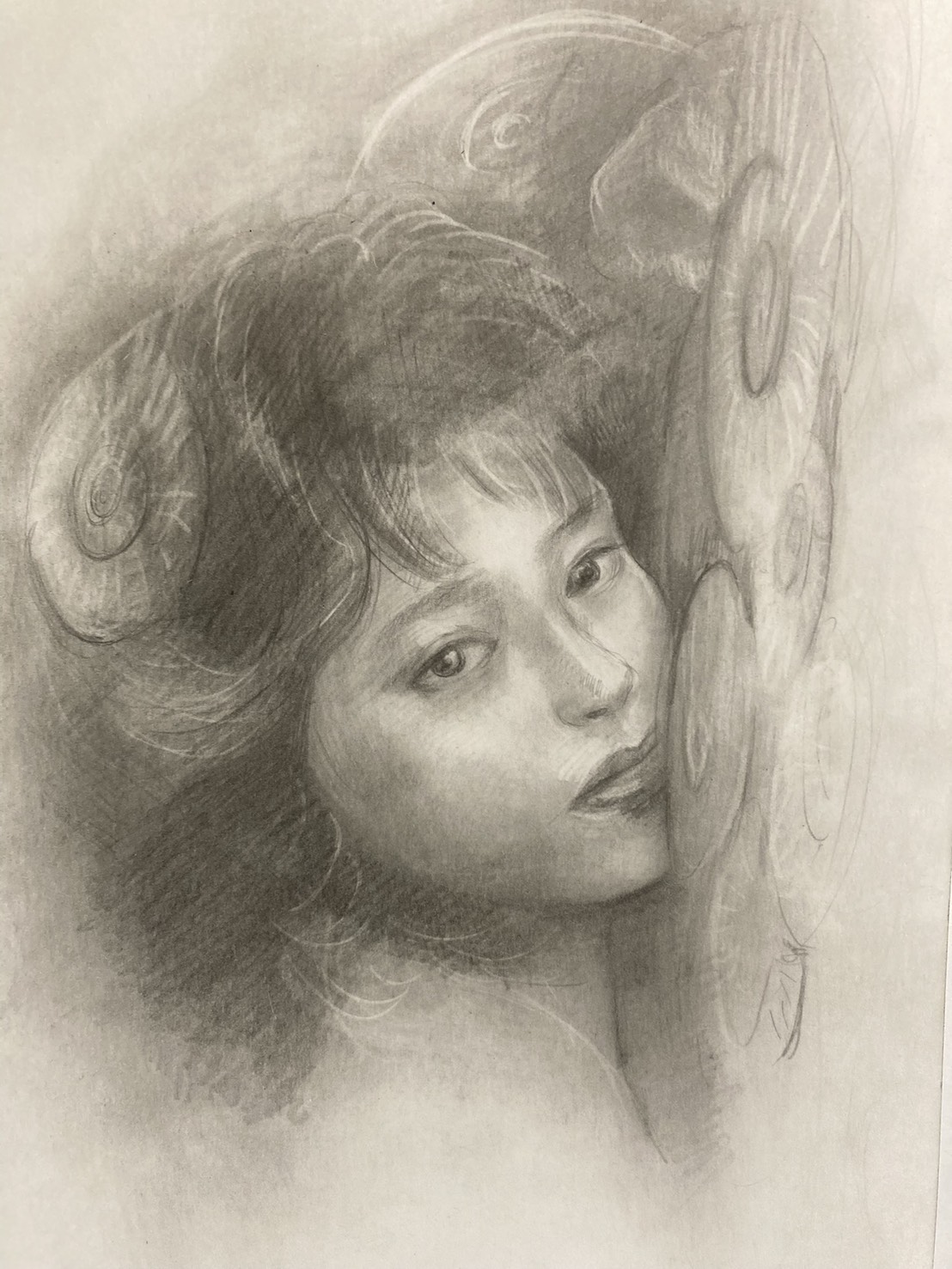 先日「記憶の果て」と題したマダガスカル産のウニの化石の絵を描いた。